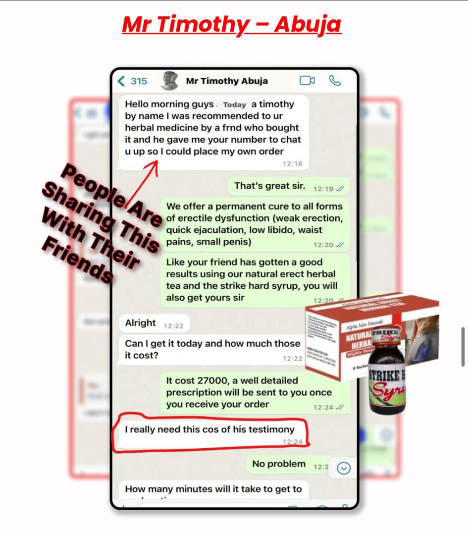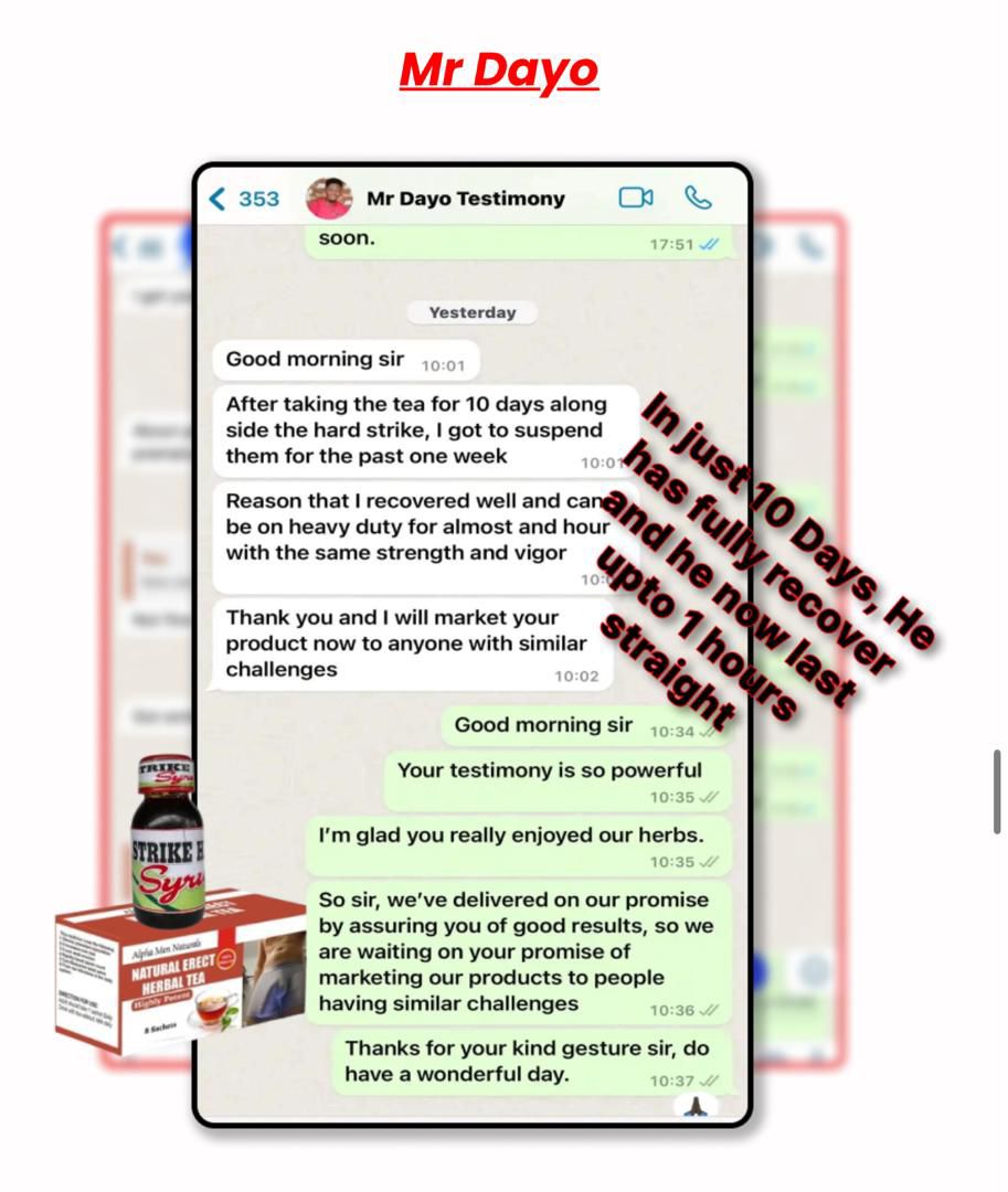 THAT MEANS, IF YOU ORDER RIGHT NOW, You will get THIS Ancient Natural Erect Heal Tea And Strike Hard syrup FOR A very Affordable PRICE OF just N30,000 For The Full Treatment